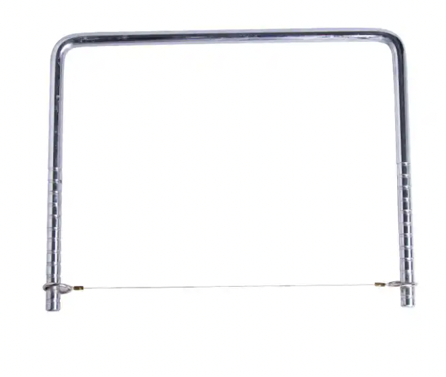 A very handy steel mud bow. The U shape frame has an adjustable wire so that you can easily cut clay slabs of different thickness.