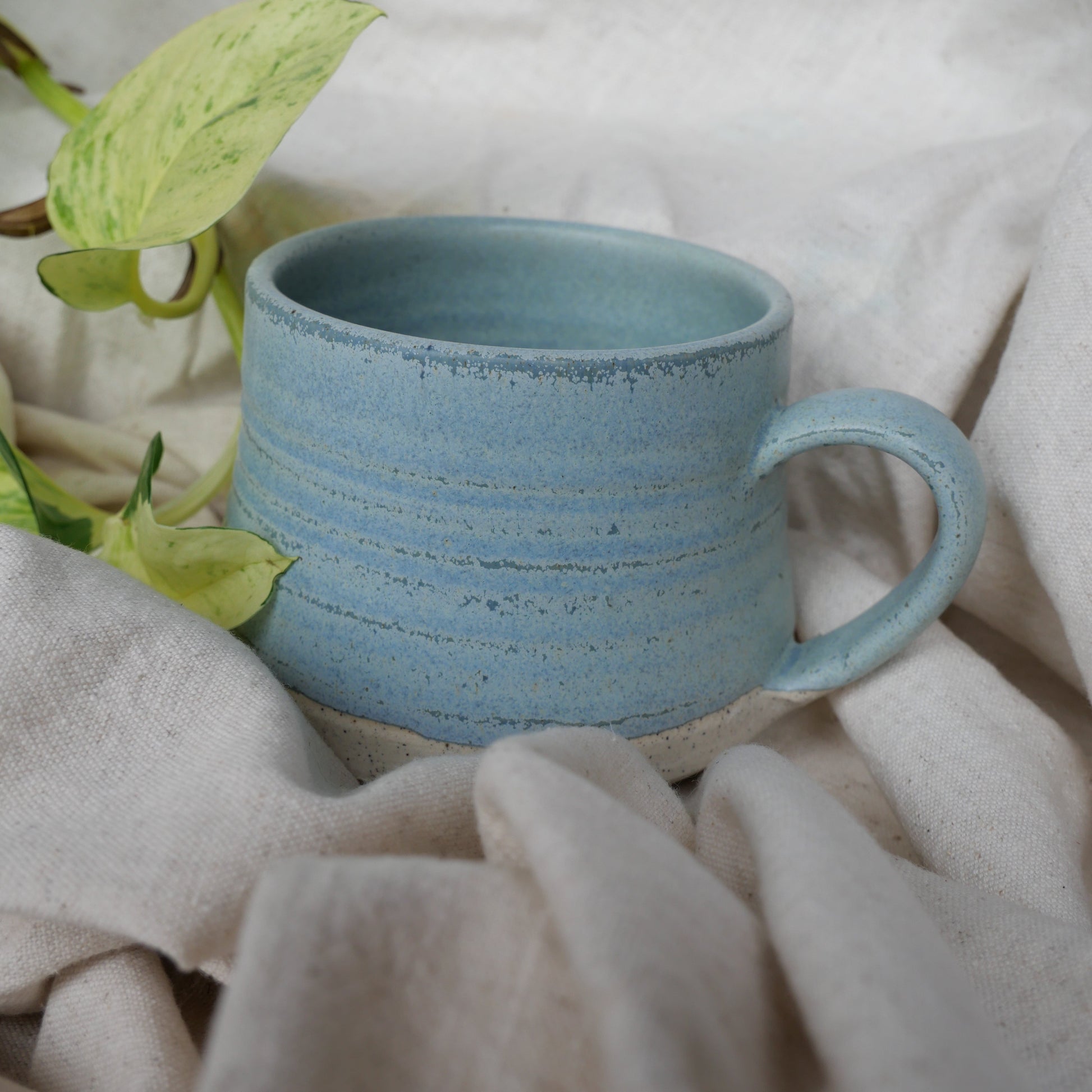 This glaze can go green where applied thinly, It is also a microcrystalline glaze, meaning that during cooling, tiny crystals form on the surface, creating the subtle colour variations and depth. These microcrystals develop more noticeably when the kiln cools slowly through the range of around 1050 °C to 850 °C, allowing the glaze to grow its delicate patterns naturally.